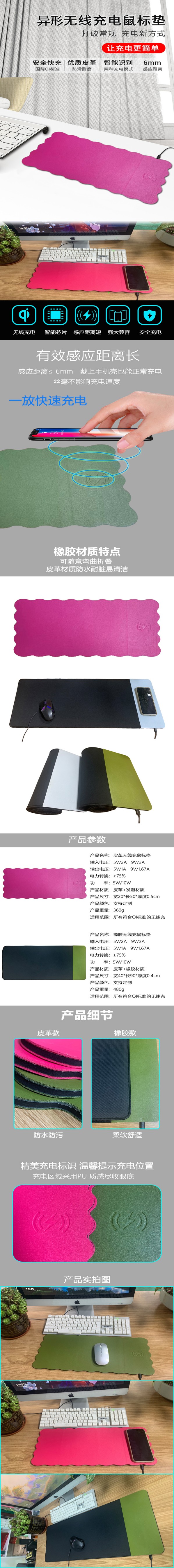 異形皮革無線充鼠標墊 熱銷手機無線充鼠標墊批發電競游戲網吧加厚電腦辦公鼠標墊