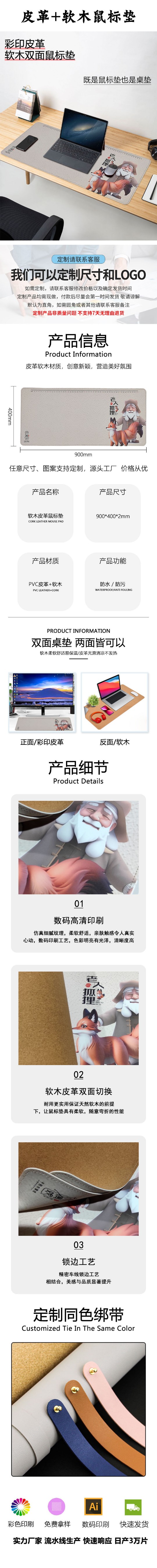 定制軟木+皮革鼠標墊廣告電競游戲墊辦公寫字桌墊杯墊地墊來圖定制